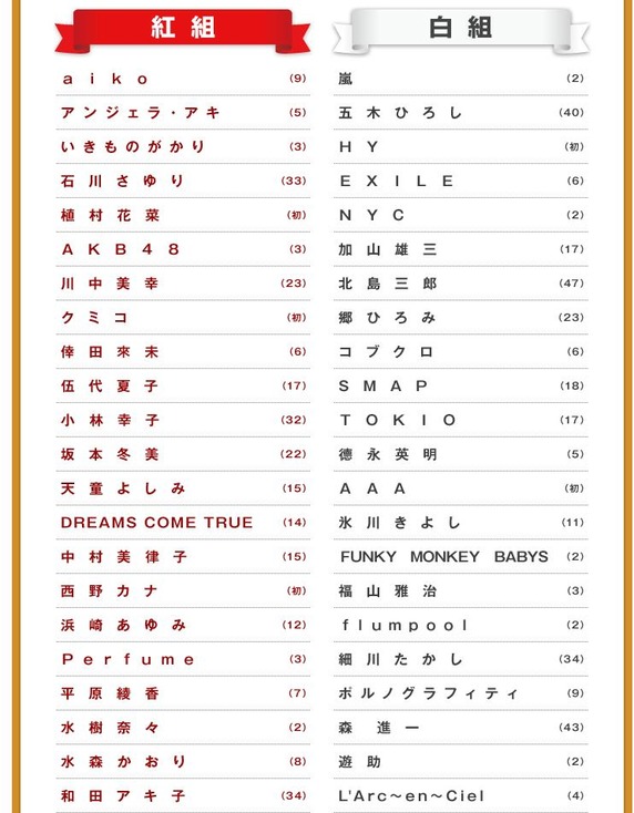 第61回NHK紅白歌合戦の出場歌手が決定しました。